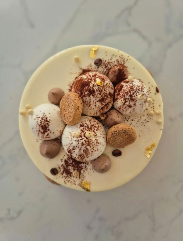 Tort PISTACJA_TRUSKAWKA to kompozycja delikatnego mus na bazie białej czekolady z pastą z orzechów pistacji 100% w połączeniu z konfiturą truskawkową i tradycyjnym biszkoptem. Tort dekoruje polewa pistacjowa z krem śmietankowy – biała czekolada z wanilią Bourbon oraz owoce czerwone.